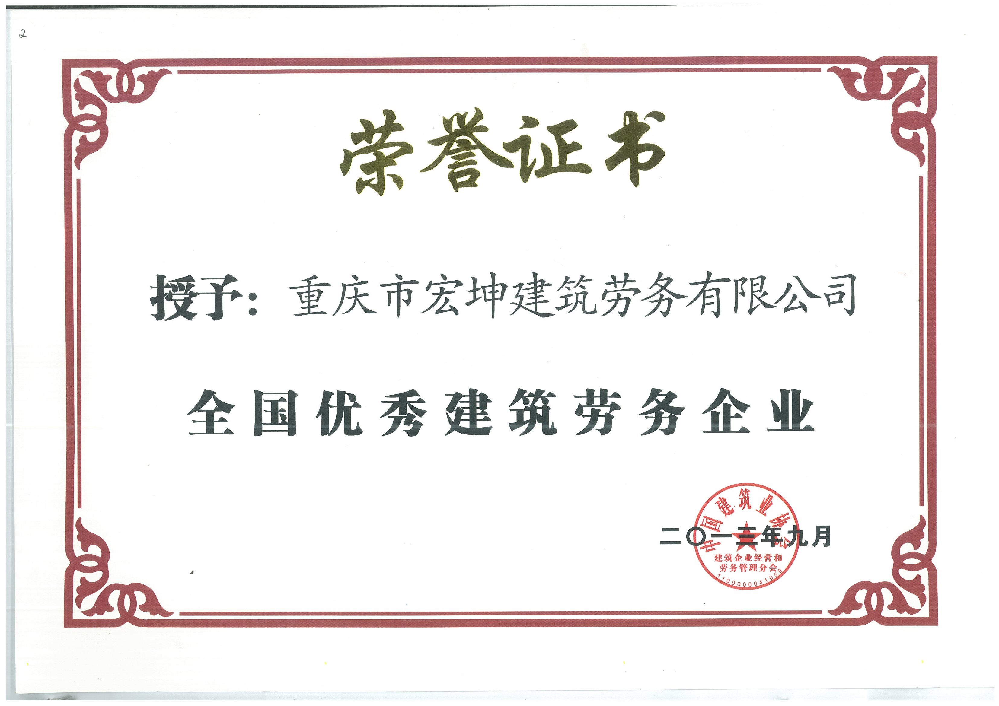 經過多年奮斗,公司先后被評為重慶市建筑業先進企業、重慶市AAA誠信建筑企業以及全國優秀建筑勞務企業,公司領航人張燦國先生,也被評為全國優秀建筑勞務企業經理。