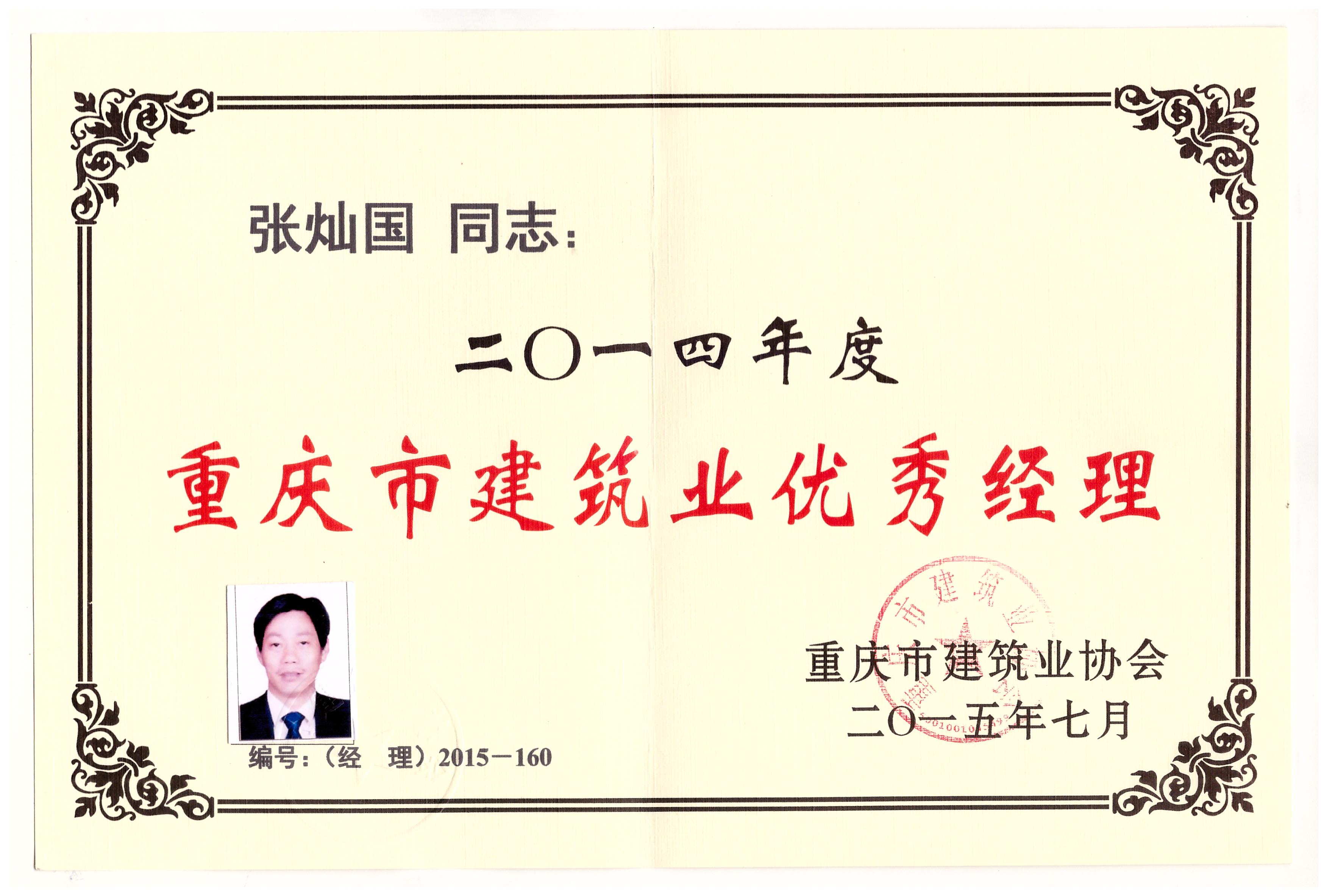 經過多年奮斗,公司先后被評為重慶市建筑業先進企業、重慶市AAA誠信建筑企業以及全國優秀建筑勞務企業 公司領航人張燦國先生,也被評為全國優秀建筑勞務企業經理